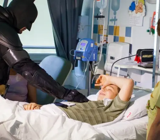 Assim como o Batman não tem superpoderes, mas enfrenta o mal com extrema coragem a criança também pode ser sugestionada a fazer o mesmo quando diante das adversidades, dores e privações do seu tratamento.